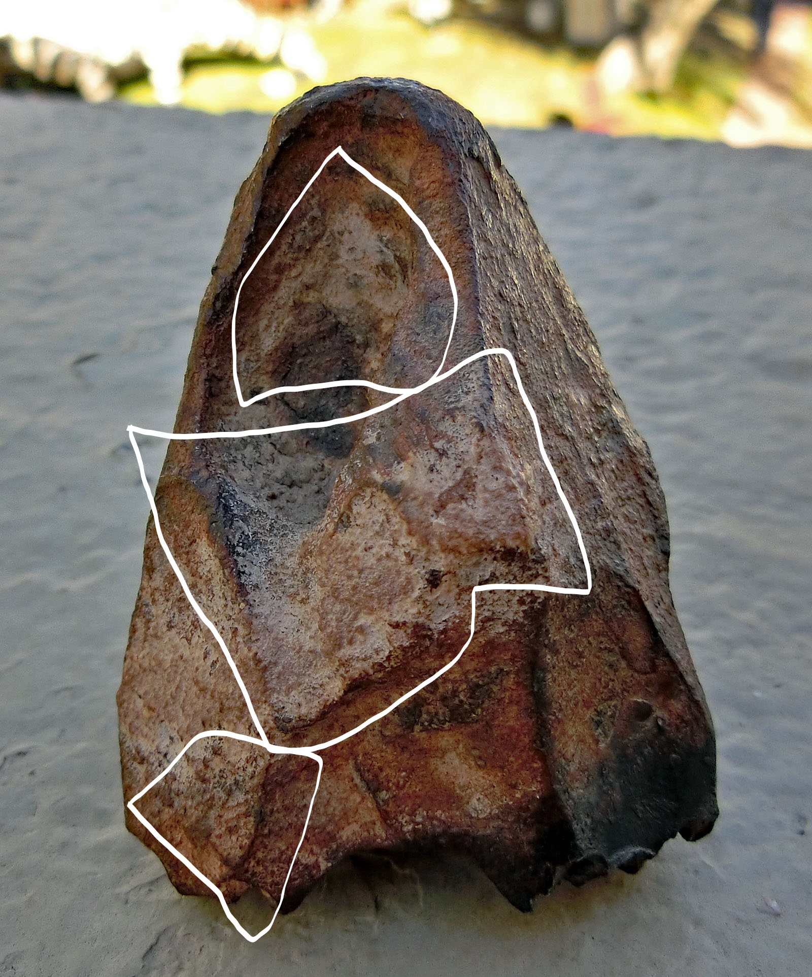 More often, however, one finds clusters of boulders that were once co-joined, like bubbles in a foam. In a foam, bubbles and drops conform to each other, matching shapes across cellular membranes. It’s very obvious the boulders shown in the next set of images are clusters of drops that have dried and fallen apart, leaving matching surfaces where they were co-joined.