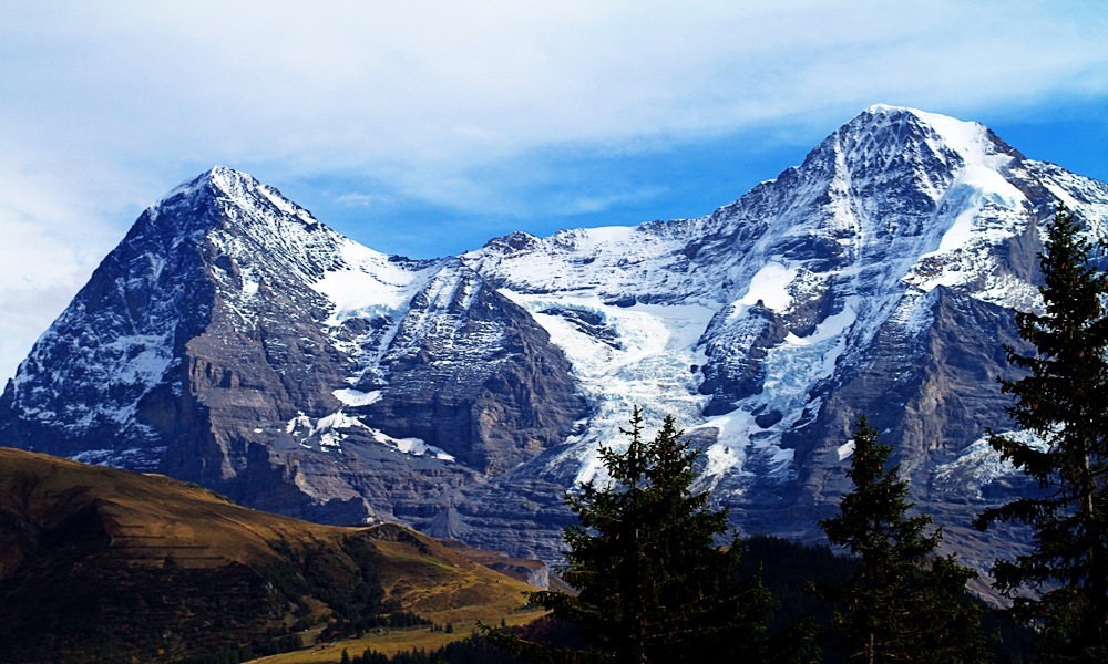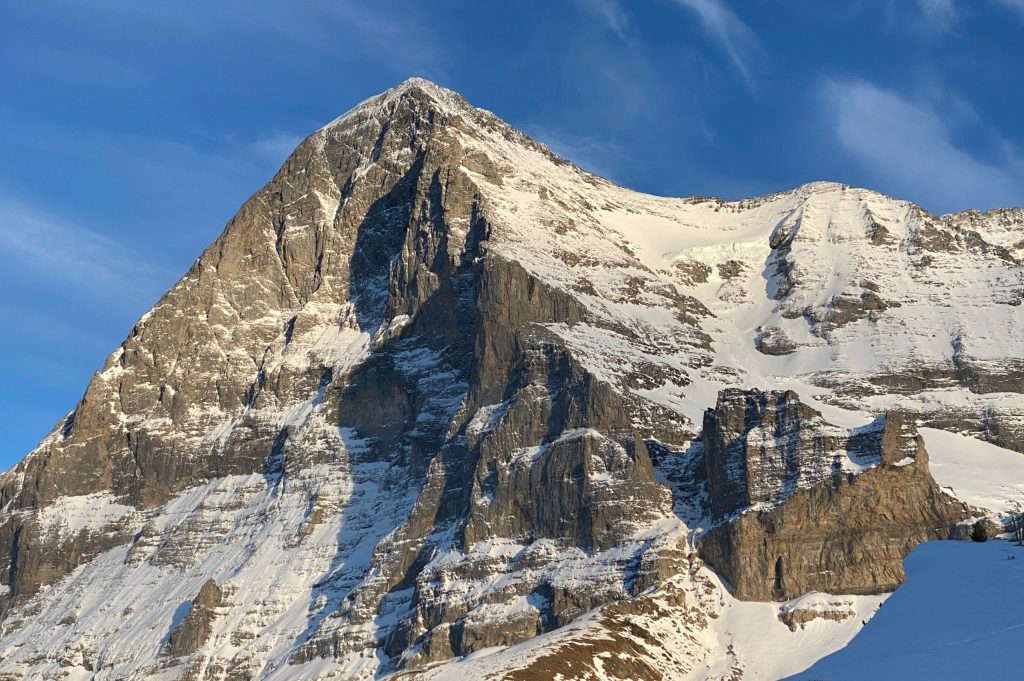 I began my search with the famous Eiger in the Alps. The “Death Wall” as it’s known by climbers, is the near vertical wall on the north face of the mountain. This is the leeward side. The other side of the Eiger is a steeply sloping triangular face that forms the windward, or “ski-slope” side.