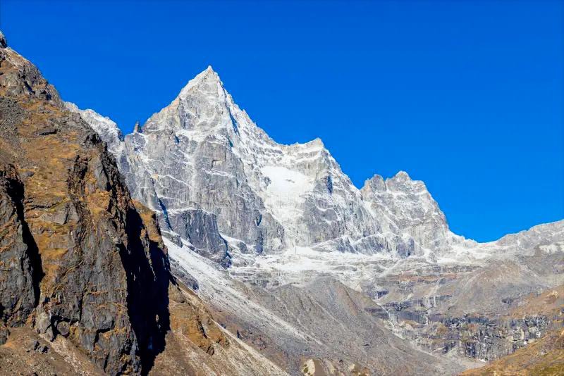 a. Mera Peak – note the “V” is offset creating the Nike swoop.b. Nanga Parbat – notch is holding a glacier.c. Shishapangma – another Nike swoop.Figure 7
