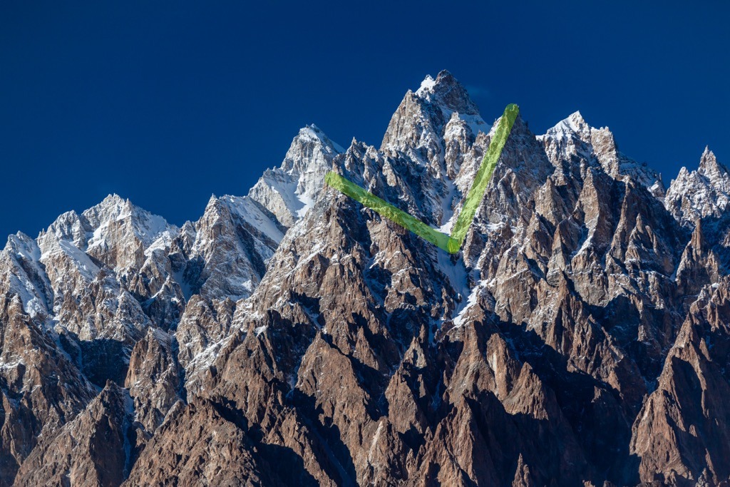 Well, in all honesty, I already knew I’d find a notch on the Eiger. I was aware of the climbing history of the mountain and the fact climbers used these diagonal cuts and the “V” notch as part of the standard route. So, then I predicted that I would find the same thing in the Himalayas. See Figure 5, a through g.