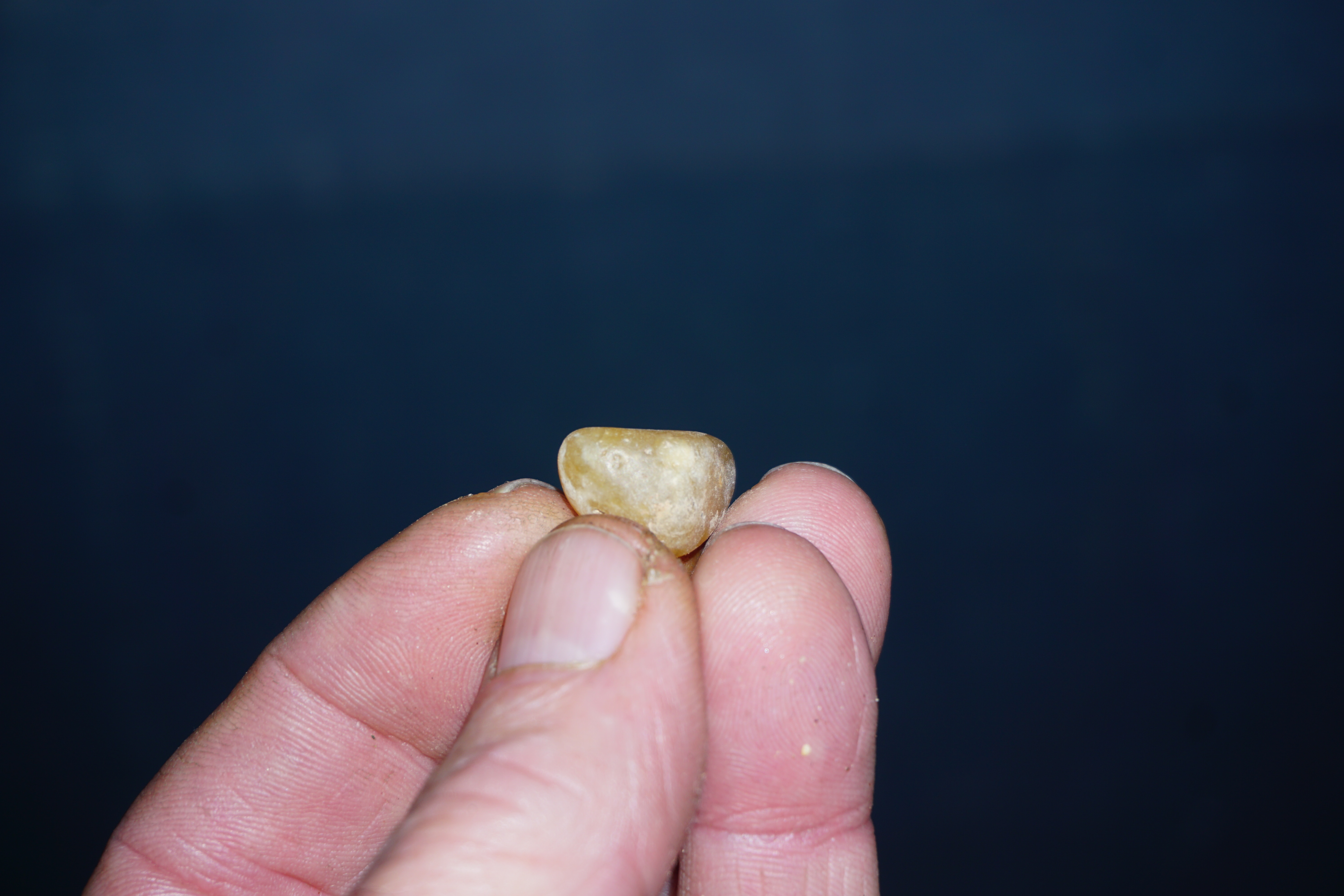 One side indeed was rounded and polished, as if washed by sand and water, but one side was flat. Which entirely confirmed my expectation, because I suspected such gravel to be the result of rock rain. These “river rocks” fell like rain after being blasted into the sky as molten glass and reconstituted as drops and hailstones. The ones that were still hot and molten inside, but had a cooled crust, landed like pudding drops, making the flat bottom; and the top exposed to winds, still screaming, made elongated and rounded streamlined tops to the drops. You know these rocks. They’re the best ones to skip.