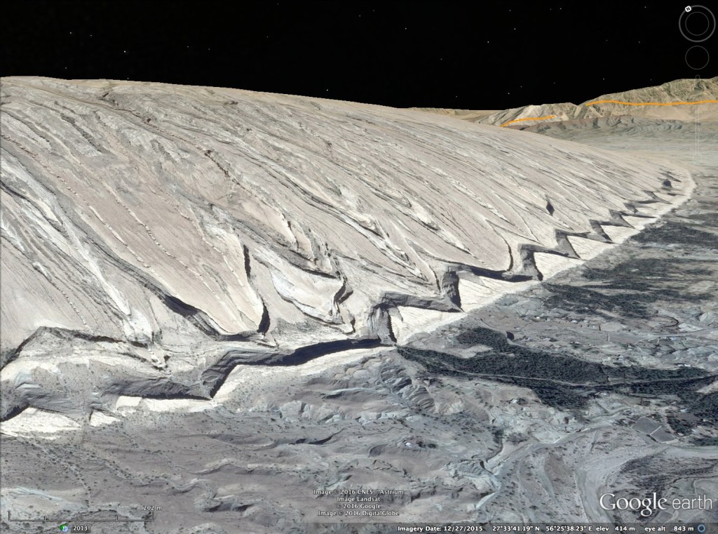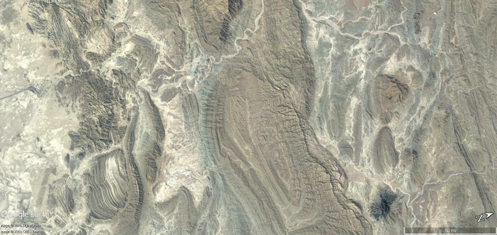 This should nail the coffin shut on consensus geology and prove plasma winds. The entire mountain displays intricate shockwave patterns that can be matched, curl for curl with a repeatable wind tunnel test. And this isn’t the only example of the same turbulent form in mountains. Mt. Origami happens to be the best example I’ve found.