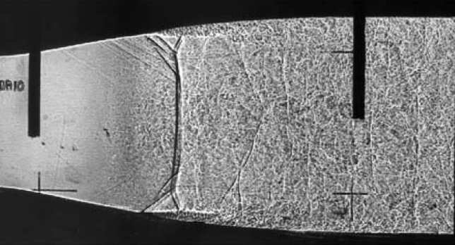 The image shown is an example. It portrays a standing shockwave produced by a supersonic wind in an expanding volume chamber. Note the nuanced patterns that barely show as shadows, as well as the darkly defined lines that portray the incident shockwave. These are all harmonic reflections that resonate with the incident shockwave, and portray an interference pattern of compression and rarefaction downstream.