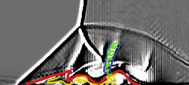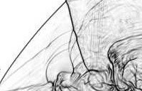 Next are highlighted prominent features on the image of an unstable shockwave produced in a wind tunnel. You can see, adjusting for perspective, they are patterned almost identically.