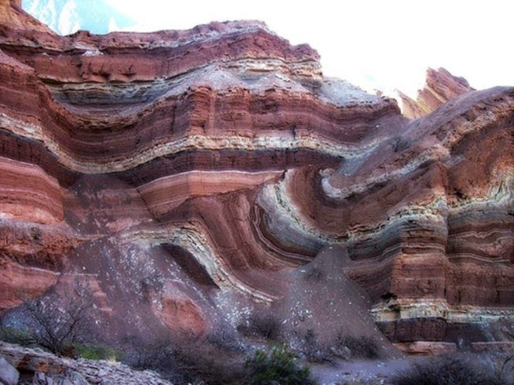 The consensus will say heat and pressure under tons of overburden made the rock plastic, and seismic forces made it twist. But these formations are right beneath the surface, where no such heat and pressure exists. So, the consensus added millions of years to allow time for something to happen.
