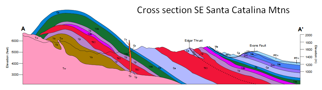 A separation bubble produces harmonics in wind tunnel tests that can be perfectly matched with complex mountain forms. Wind deposits “sediment” layers aligned with pressure regimes within the separation bubble. More often these are deposited in laminar planes, like this geologic depiction of the layers in the Catalina Mountains, in Tucson Arizona.