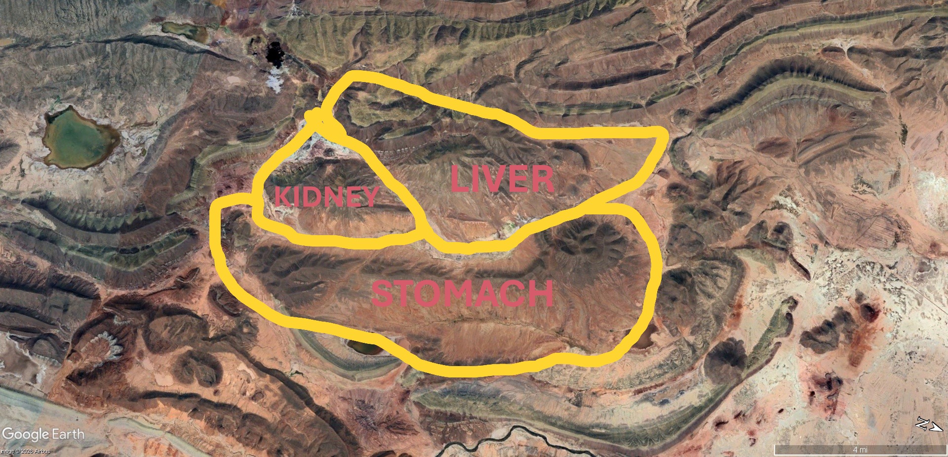 Please look at Figure 2 carefully and you will see more than just the shape of a bird in flight. There are details that can’t be ignored. Yet somehow they have been, even though it’s right there on Google Earth. It is ignored because it is evidence of intelligent design.